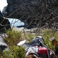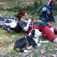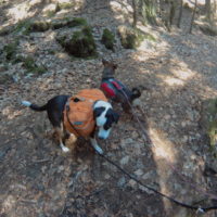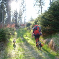 Wir legen ein Päuschen ein, was besonders die Hunde freut. Jeder aus der Gruppe hat kleine Leckerchen parat, und die werden großzügig verteilt. Da wird auch gleich der Rucksack leichter ;). Wir vegleichen, wer was schleppt…bei mir sind es ca 18kg, das liegt am Hundefutter und am Wasservorrat!