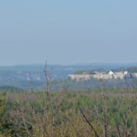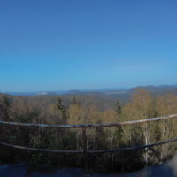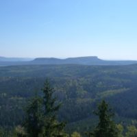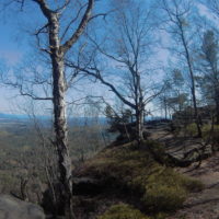 18 scheint heute die magische Zahl zu sein, denn so weit ist es von hier noch bis Nikolsdorf. Also auf zur nächsten Aussicht: in einer Schleife gehts über den Lampertstein. Und hier gibts eine Menge zu sehen! Die Festung Königstein und den Papststein können wir eindeutig ausmachen, neben all den anderen Sandstein-Bergen, die aus dem Wald ragen. Auch den Lauf der Elbe sehen wir schon.