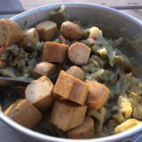 Nach einer recht frischen Nacht gibt es ein gemütliches Frühstück am Lagerfeuer. Wir können uns Zeit lassen, denn heute stehen nur 12 km auf dem Plan, bis nach Sněžník. In diesem kleinen Ort haben wir eine Unterkunft gebucht, da der Campingplatz in Ostrov noch geschlossen sein soll. (Dem ist nicht so, aber das erfahren wir erst morgen!)