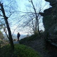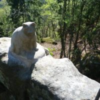 Nun erwartet uns der erste Anstieg, aber eher mäßig mit 474 MüM, zum Katzstein. Es gibt Aussicht zu genießen und eine kleine Steinkatze zu sehen. Sie steht als trauriges Denkmal für die ehemals hier lebenden Wildkatzen, von denen 1809 die letzte geschossen wurde.
