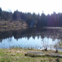Beim Abstieg verpassen wir wohl eine Markierung, und laufen statt links auf einem kleinem Pfad, auf einem großen Forstweg weiter. Zum Glück dämmert uns bald, dass wir hier falsch sind. Querfeldein laufen wir durch den Wald wieder bergan, bis wir auf „unseren“ Pfad treffen. Hier ist es auch gleich viel idyllischer. Wir laufen vorbei am Zschirnstein-Biwakplatz, einer weiteren Möglichkeit zum übernachten und an den Abzweigen in Richtung Grenzbaude und Haselmausbaude, zwei Übernachtungshütten. Der Weg führt hier immer entlang der deutsch-tschechichen Grenze…verirren kann man sich hier nicht mehr, die weißen Grenzsteine sind wunderbare Markierungen. Hier kommen wir auch sehr schnell vorran, und sind bald am Tagesziel: dem Taubenteich-Biwak.