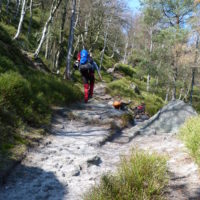 Es geht los: Abstieg ins Bielatal und auf der anderen Seite gleich wieder hinauf, zu den Herkulessäulen. Abstieg ins Bielatal und abermals auf der anderen Seite wieder hoch, zur Johanniswacht. Dann, jaaaaaaa, Abstieg ins Bielatal…dieses Spiel setzt sich fort, bis wir auf der Grenzplatte ankommen.