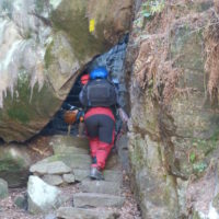 Das letzte Stück Weg führt durch das „Labyrinth“, eine besonders reizvolle Steinformation, mit vielen kleinen Gängen und Niechen. Hier gibts jede Menge zu entdecken und Verlaufen fällt ganz leicht. Wir schlängeln uns hindurch, und oft werden Kletterzustiege als Wege benutzt.