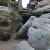 Weiter geht es durch Birkenwald und am Weg finden sich immer wieder Infotafeln, über das frühere Leben im „Grenzland“. Nach 4 km erreichen wir Ostrov. Vorbei am Campingplatz verpassen wir (mal wieder) eine Markierung und kürzen ungewollt ab. Wir verpassen den Aufstieg zu Tiské stěny, aber egal, es ist eh viel zu warm und es warten ja noch Zeisigstein und Hartenstein auf uns. Hoch und runter…hoch und runter.