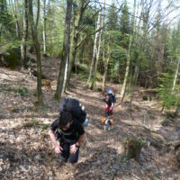 Heute wollen wir ca 18km bis zur Kamphütte laufen, eine der Treckinghütten des Forststeigs. Um die Straße im Ort zu meiden kürzen wir quer über die Wiese und am Waldrand ab. Da steht für Lia und Dori gleich zu Beginn der Strecke Mäusebuddeln mit auf dem Programm.