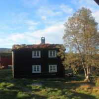 Zu meiner Überraschung sitzt dort jemand und kocht auf dem Gaskocher sein Abendbrot. Er arbeitet für den DNT in Oslo und übernachtet in einer der Blockhütten. Wir sind herzlich eingeladen. Ein Dach über dem Kopf und ein Bett, an so viel Luxus hatte ich heute garnicht gedacht.