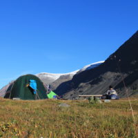 Meine Solopremiere! Auf dieser Tour habe ich so einiges gelernt, über das Wandern und über mich selbst. Diesmal starte ich in Nikkaluokta und meine Planung sieht eigentlich nicht vor, den Kungsleden schon wieder zu laufen, sondern über Hukejaure nach Riksgränsen zu gehen. Aber das Wanderleben hat andere Pläne. Der Anfang läuft wunderbar, ich schlage mein Zelt ein gutes Stück vor STF Kebnekaise auf und verbringe meine erste Nacht allein im Zelt. Auch wenn mich ab und an ein mulmiges Gefühl beschleicht ist es wunderschön hier draußen einzuschlafen.